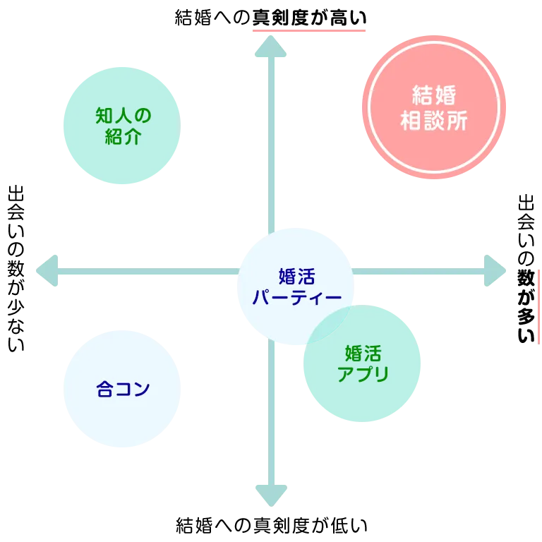 結婚相談所にご入会される人は、結婚を前提に出会いを求めて交際を進めるので、効率の良さを実感できます。