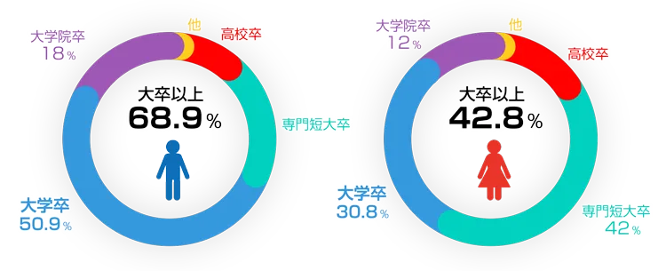 様々な年代の方にご登録いただき、年齢や性別によって価値観が異なります。主に30歳を過ぎたあたりから結婚を真剣に考える方が入会される傾向にあります。学歴