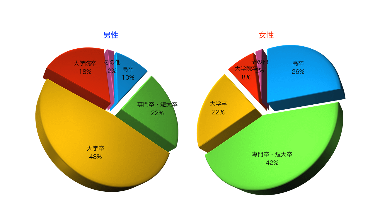 様々な年代の方が登録されており、年齢や性別によって価値観が異なります。学歴別構成比