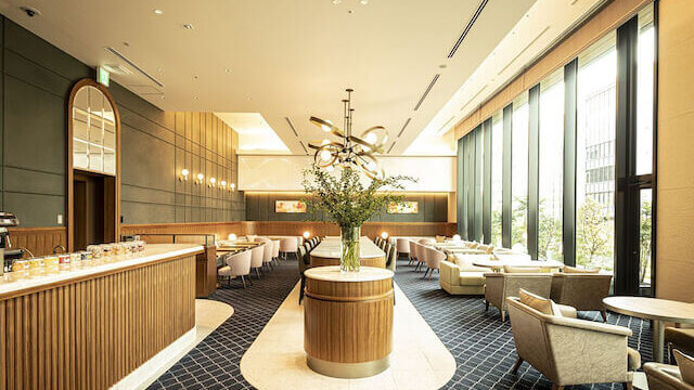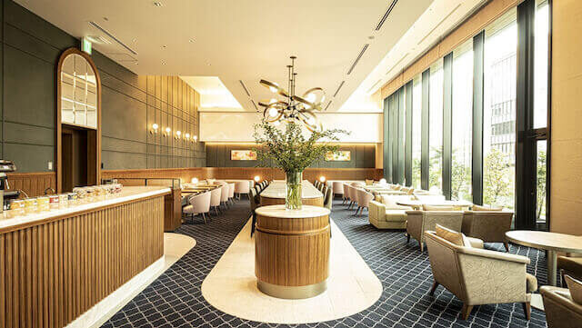開放感溢れ、日の光をたっぷりと取り込んだ明るい雰囲気のロビーラウンジです。こちらのラウンジではアフタヌーンティーセットが頼めます。いちごや抹茶など、季節によってテーマを決めているアフタヌーンティーは見た目も華やかです。