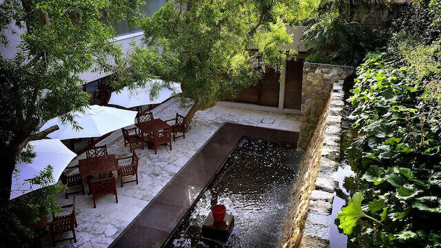 開放感あふれる空間で、軽食・ランチ・カフェ・バー利用が楽しめます。ケーキも飲み物もとてもおいしく人気があり、中庭には噴水が設けられ、階段を下りてビーチにたどり着けるようになっています。ラウンジでゆっくりお見合いした後、中庭のお散歩も楽しめます。