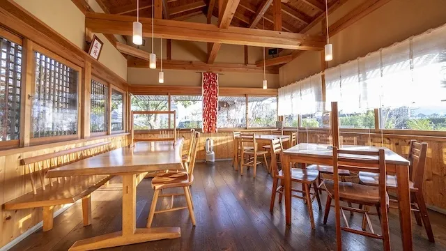 駐車場完備で全席禁煙といった安心感に加えて、落ち着いた木目調のインテリアでゆったり会話ができる環境が整っています。