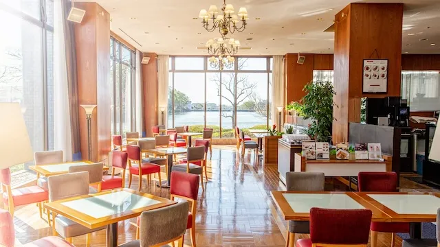 ホテルニューオータニ佐賀に併設されるグリーンブリーズは、季節の景色を望めるお濠沿いの窓席と、落ち着いたラウンジ空間という、初対面でも会話が自然に流れやすい雰囲気が魅力です。