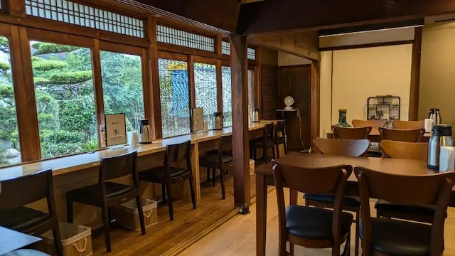老舗の日本茶専門店・宇治園がプロデュースするカフェです。店内も広く、庭の景色を眺めながらゆったりとお見合いを楽しめます。駐車場も広く、どこかの道の駅のような和の雰囲気の外観がオシャレです。