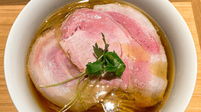地鶏や醤油といった素材の良さを生かした味わいで、シンプルながら極上の醤油ラーメンに仕上がっています。麺は、北海道産の小麦を使用した自家製麺で、この麺とスープの相性も抜群。チャーシューなどのトッピングも、素晴らしくおいしいです。