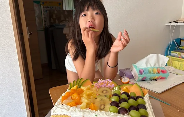 私の周りには9月の誕生月が多いようです。娘がオリジナルの3段ケーキを作り、ご満悦。フルーツたっぷりです。