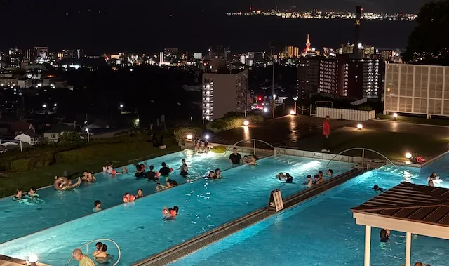 シーガイアホテルにもプールがあり、家族連れやイチャイチャカップルたちで盛り上がっていました。大分の杉乃井ホテルに泊まったことが、すいぶん過去のよう。