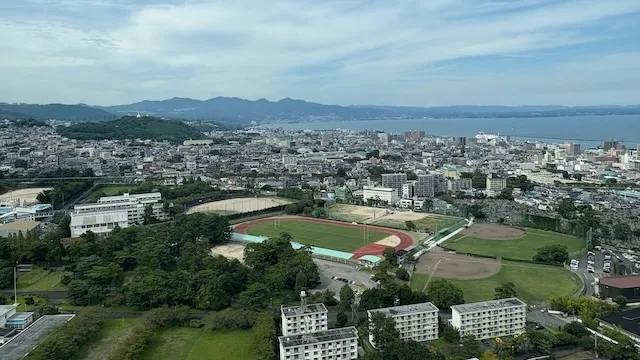 『グローバルタワー』というそうで、登ってみることに。別府タワーも個性的でしたが、こちらも良かった。別府の街全体を360°堪能できます。