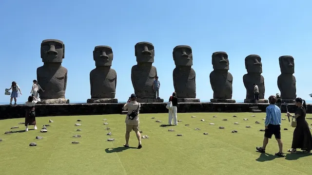 ヤシの木とモアイ像、これは宮崎の定番アイテム。最高に相性がいい! そして、モアイの迫力といったら、威風堂々たるや見応え抜群でした。