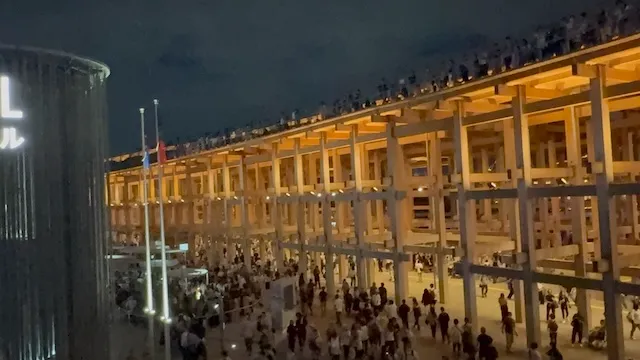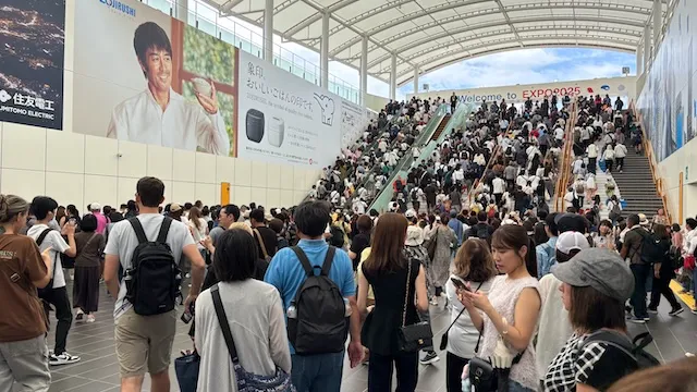 大阪万博の夢洲駅に到着。会場前だけでこの人だかり。先が思いやられます……。気を乗り直して、行ってみましょう!