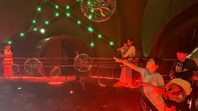 夜に行ってみると、ビックリするほど空いていたのでチャンスとばかりに列へ。バーチャルVR映像のXRライドで大迫力! 最高に楽しかったので、ぜひ。