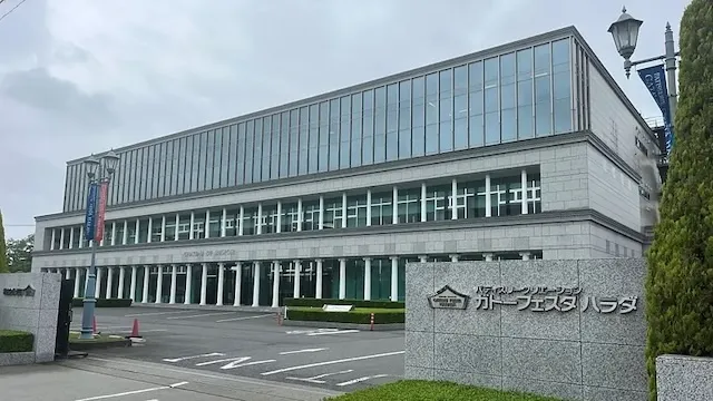全国的に有名なラスクの名店「ガトーフェスタ ハラダ」の本社に併設された、ギリシャ神殿のような白亜の豪邸が目を引く工場です。