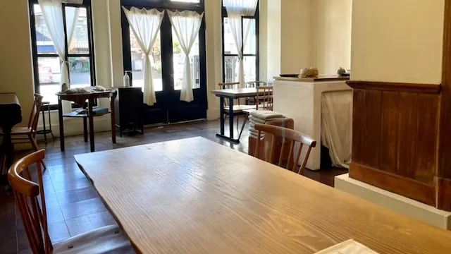 大正時代の洋館をリノベーションした建築的な美しさがあり、訪れるだけで特別感がある空間。雰囲気重視のお見合いにもぴったりです。店内は静かで落ち着いたインテリア。高い天井や梁、引き戸など建築の趣を感じられる造りで、周囲の騒音が気になりにくく会話をじっくり楽しめます。